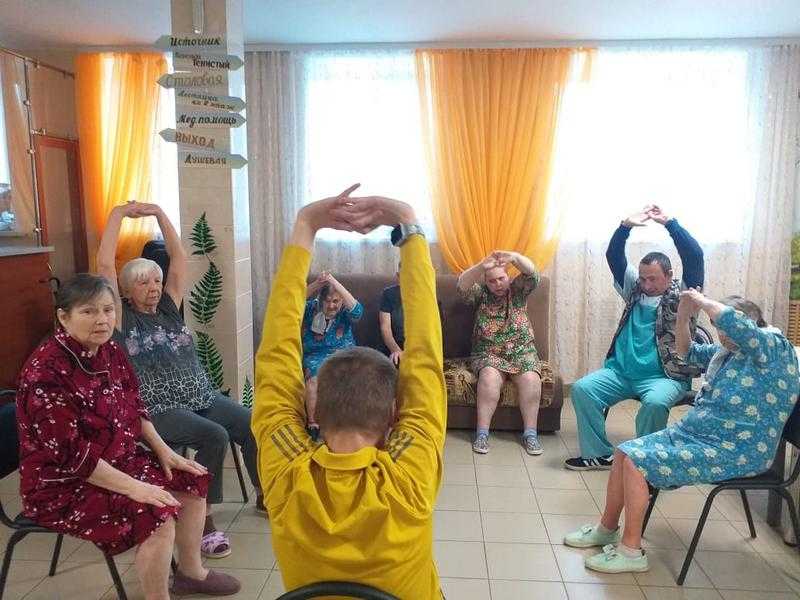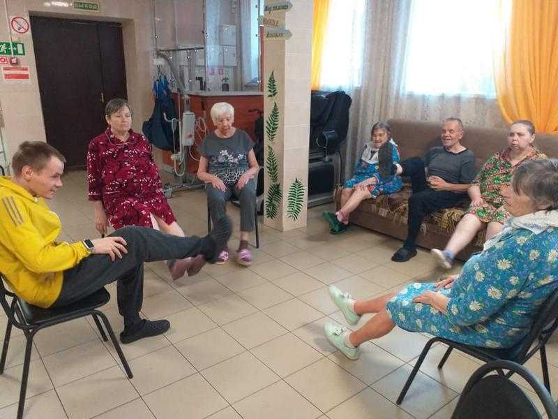 Особую активность проявляют Сергей, Александр и Алексей — они с радостью гуляют с маломобильными проживающими, общаются, занимаются зарядкой и поддерживают хорошее настроение.