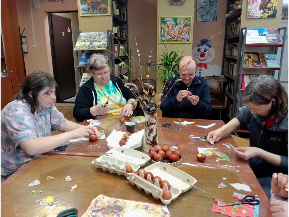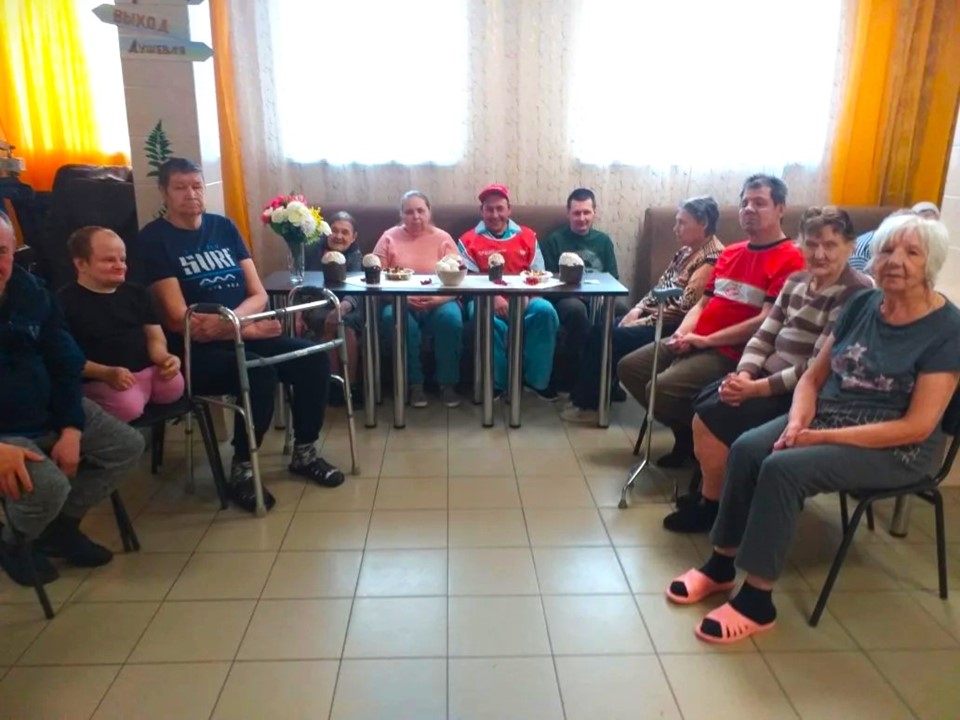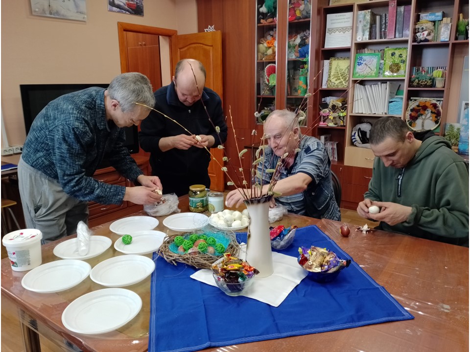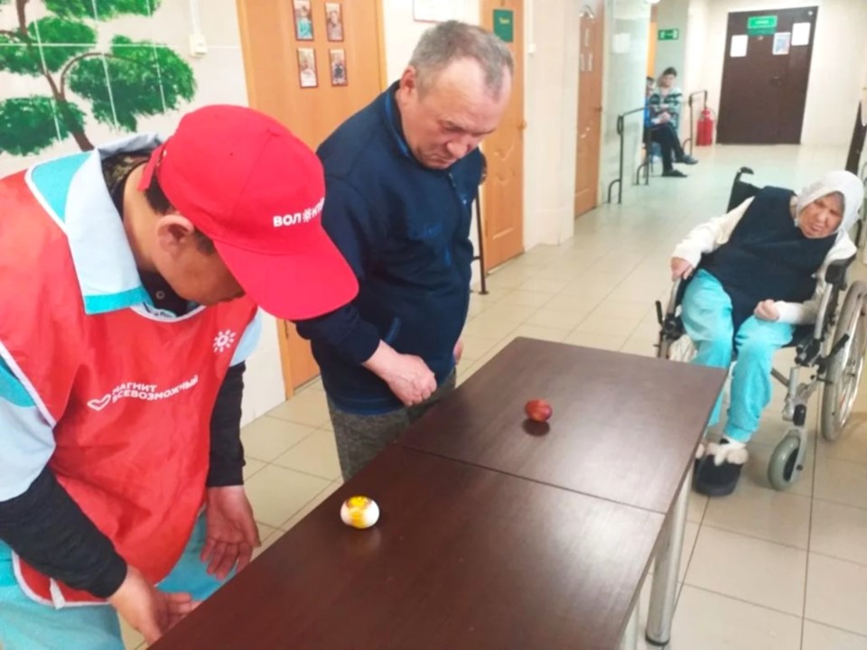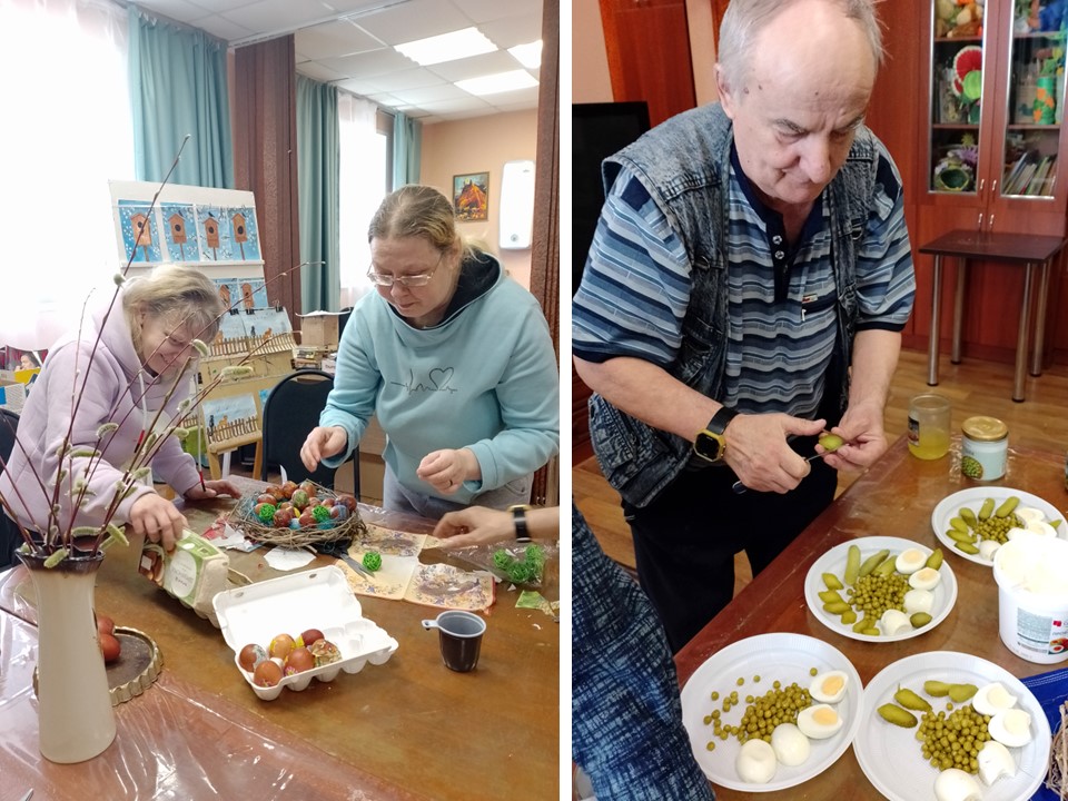 В нашем доме продолжается празднование Пасхи. Наши маломобильные жители вместе с волонтерами играют в пасхальные забавы, и, конечно, наслаждаются вкусными угощениями.